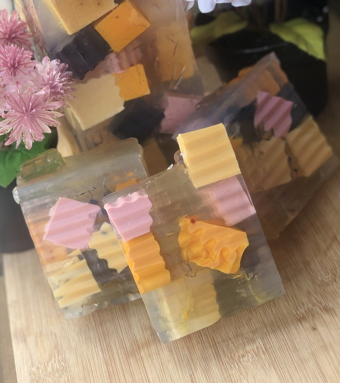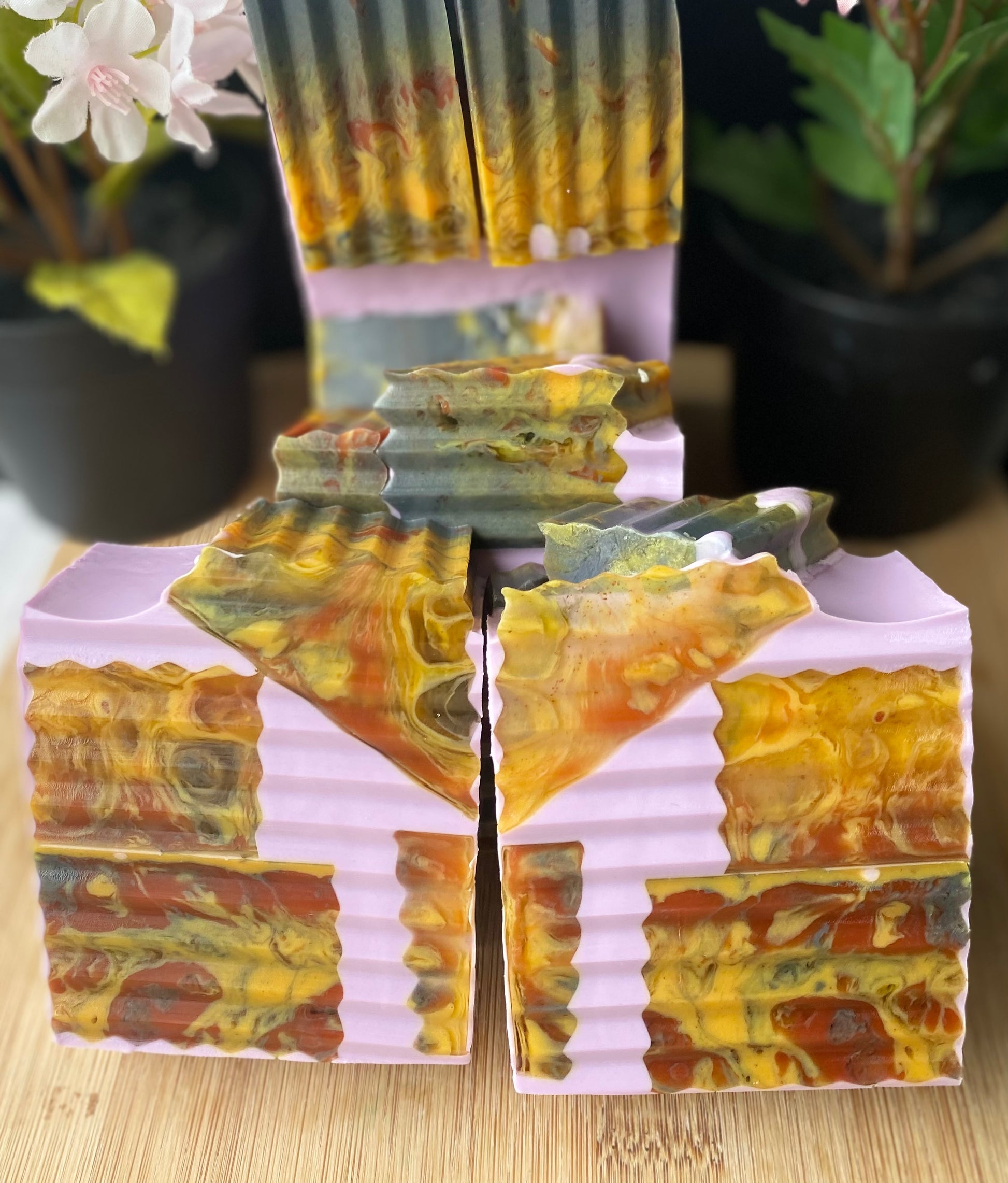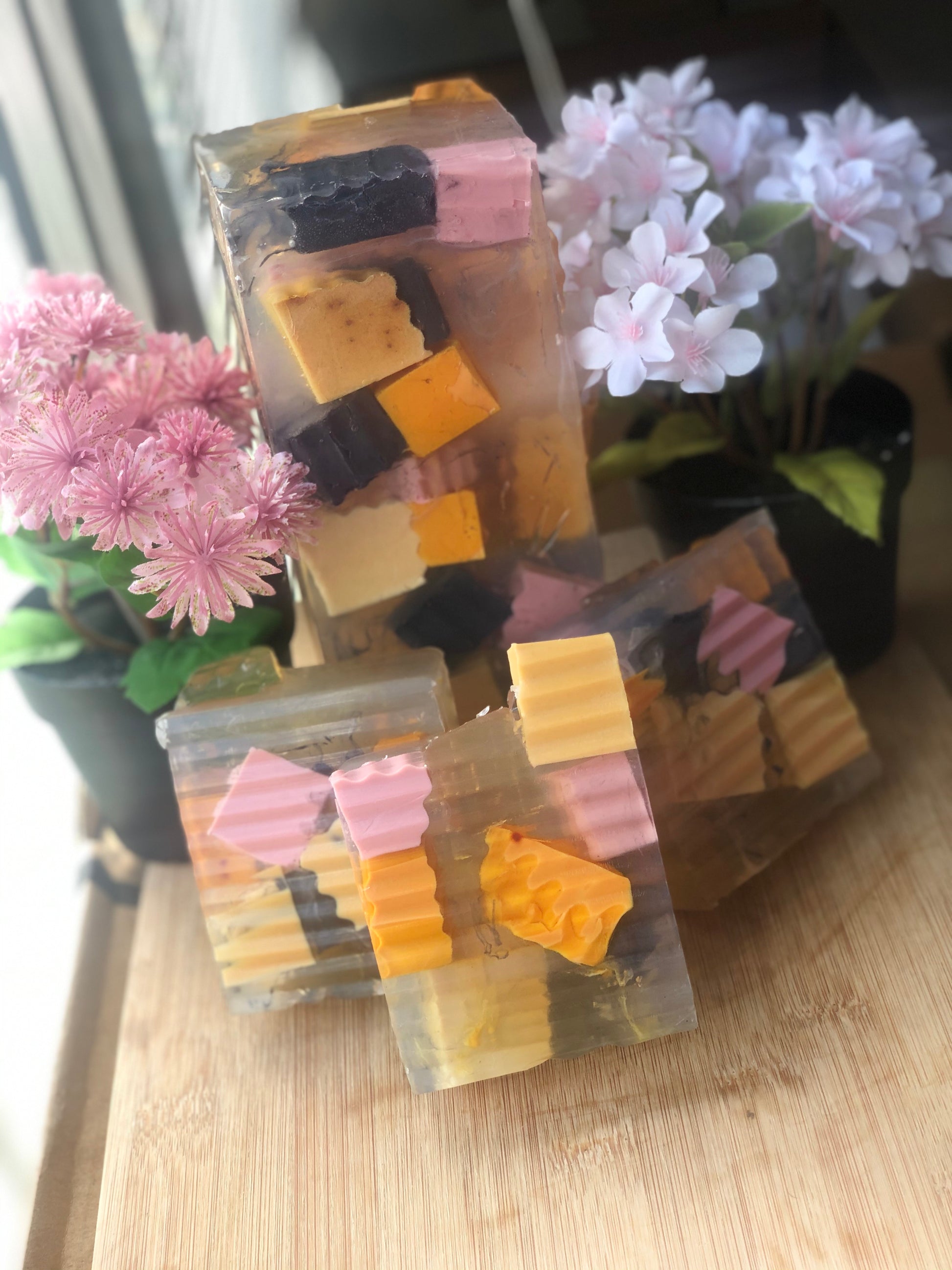 Infused with 100% natural ingredients. The Glow up is real! This bar was handcrafted using essential oils Shea Butter, Coconut oil, Activated Charcoal, Turmeric, Rose Clay, Honey, Lemon, Lemongrass, & Peppermint.