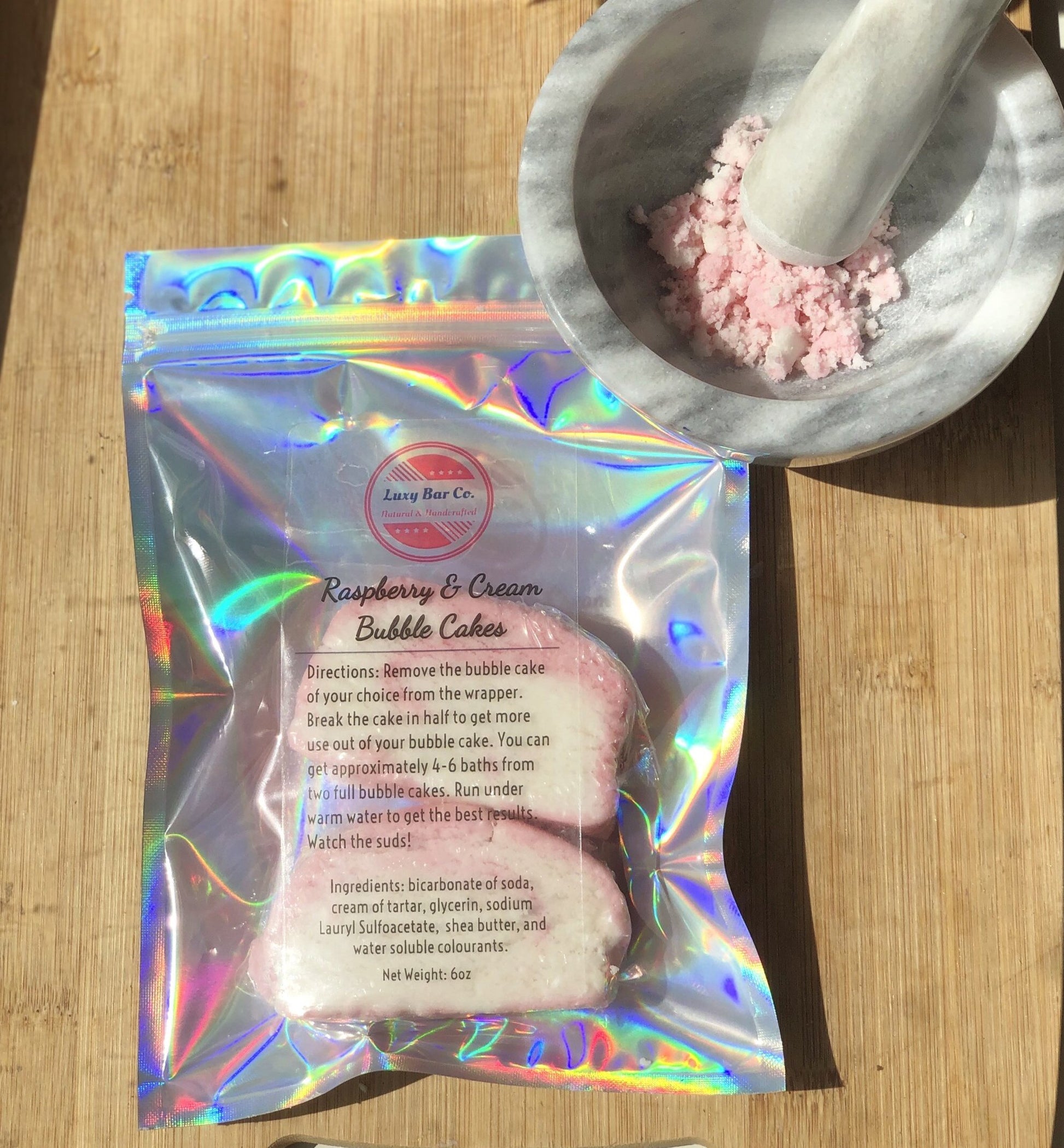 Bubble Cakes are loaded with ton of skin-loving oils, butters, herbs, and salts handcrafted to provide a soothing and enriching spa experience at an affordable price.
