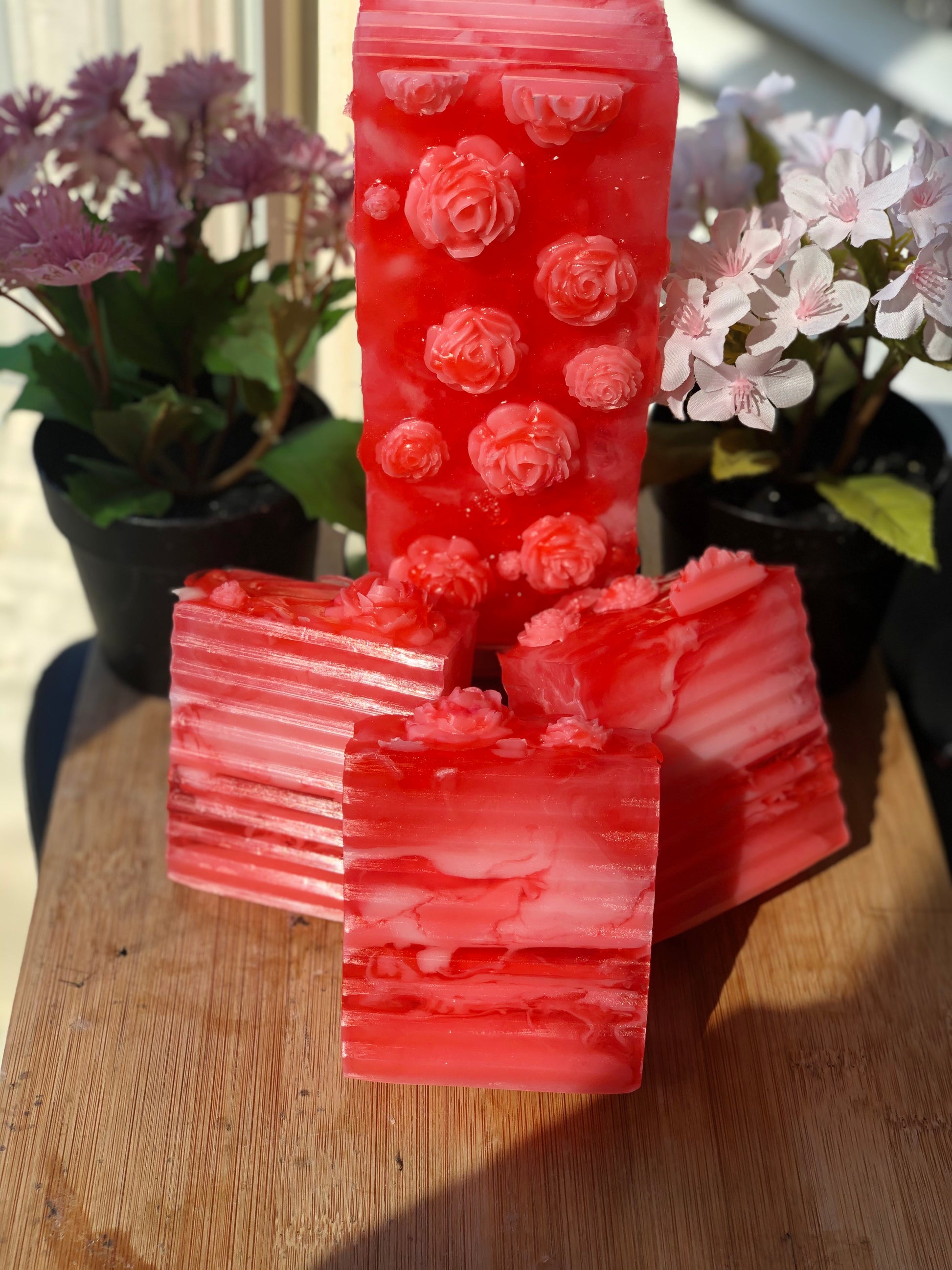 Infused with 100% natural ingredients. Life is sweeter with a lovely bouquet of roses! This bar was handcrafted using essential oil Lemon, Basil, Spearmint, and much more. Shea Butter, and much more. Use this bar to cleanse, moisturize, and increase your mood. Use this bar to help naturally restore your pH balance and eliminate odor. For external use only.