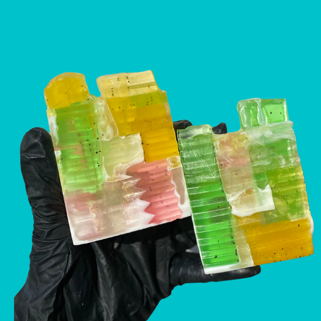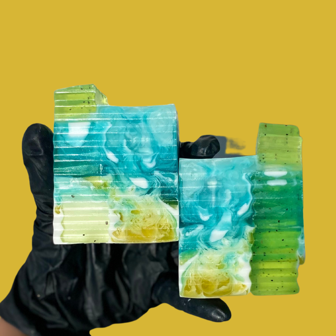 Infused with natural ingredients. Hit the islands with our Kiwi & Coconut Cream Bar! This bar was handcrafted using essential oils, Lime E/O + Lemon E/O and F/O. Scent is reminiscent of Kiwi, Coconut, & Banana.
