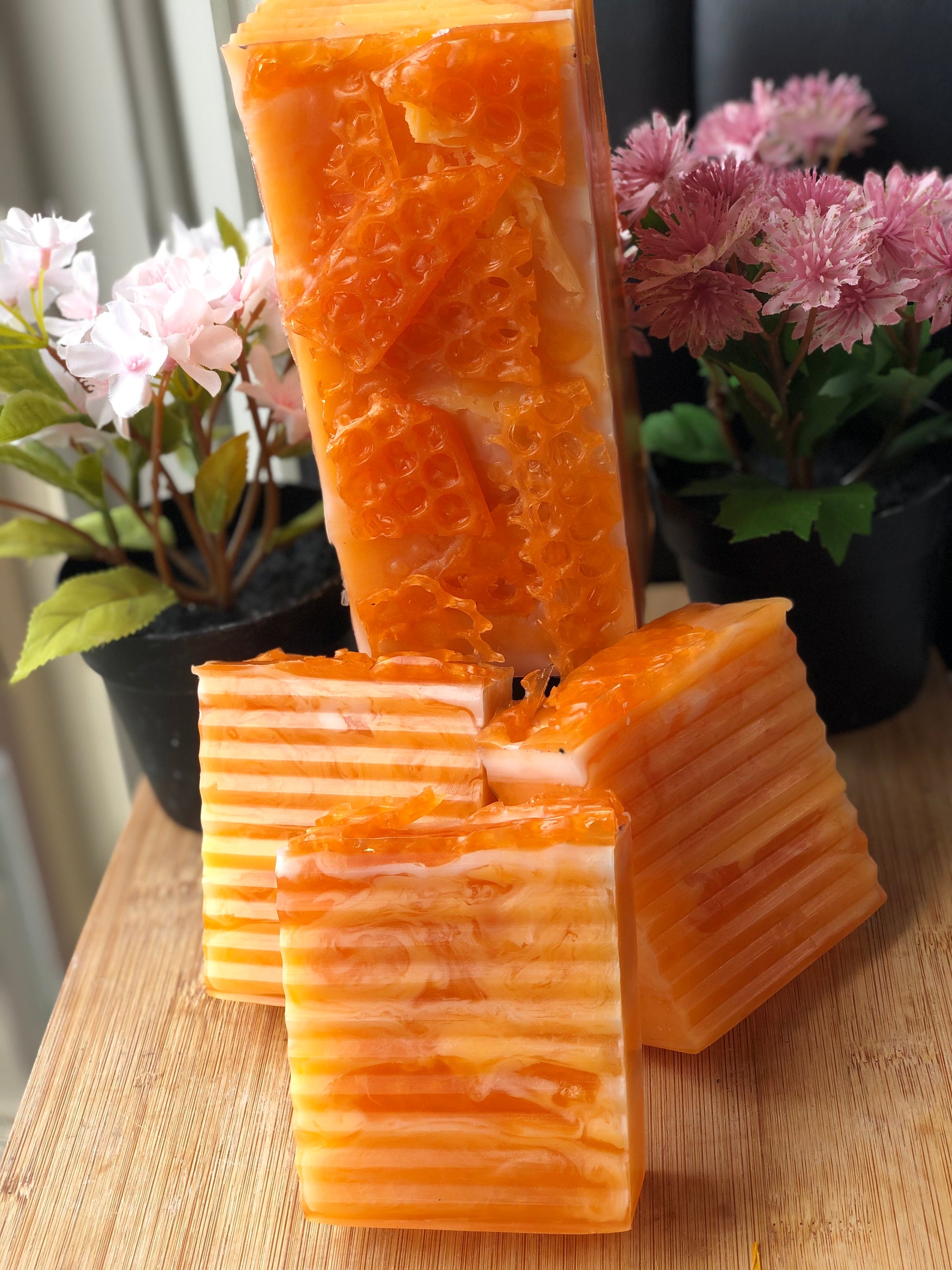 Infused with natural ingredients. Need a vacation? Dip off to the islands in your shower! This bar was handcrafted using essential oils Vanilla, Papaya oil, Fragrance Oil, Shea Butter, and much more. Use this bar to cleanse, moisturize, and increase your mood. For external use only.