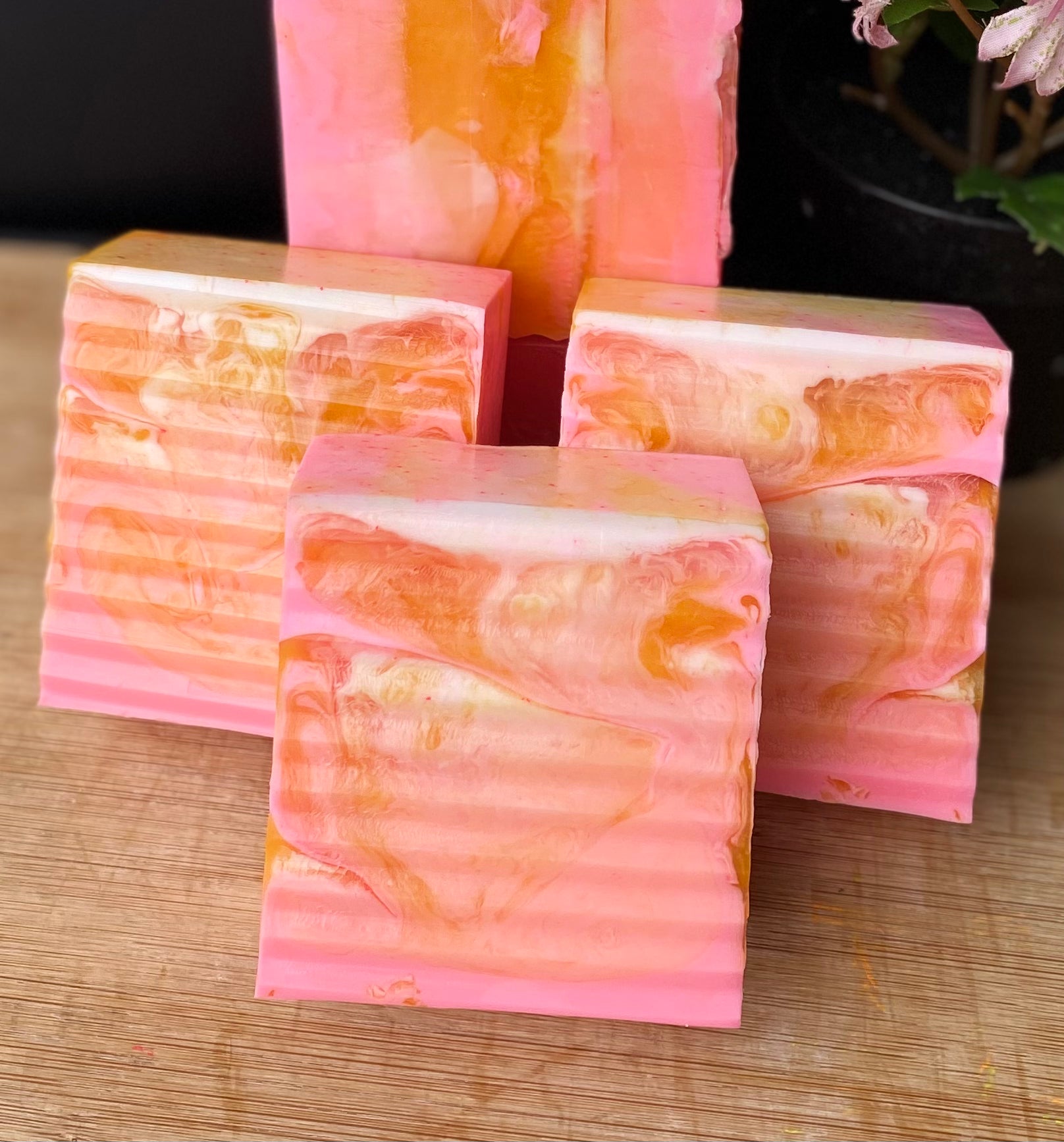 Infused with natural ingredients. Paradise never looked better! This bar was handcrafted using essential oils Lemon, Grapefruit, Banana F/O, Coconut F/O, and much more. Use this bar to cleaner, boost hydration, and seal moisture, For external use only.