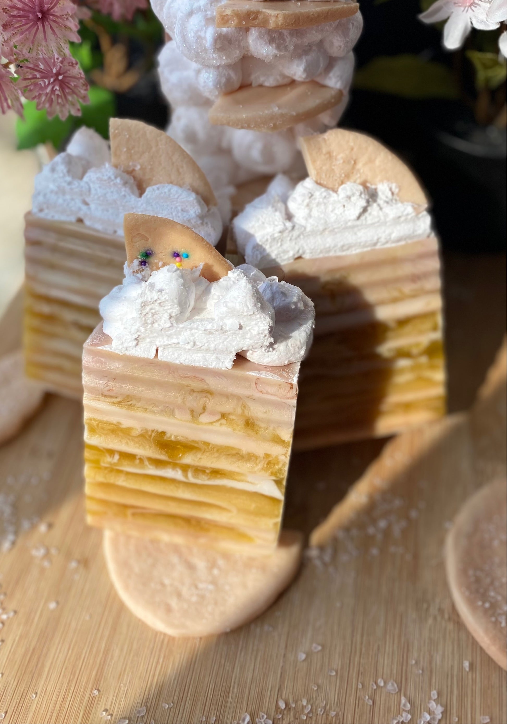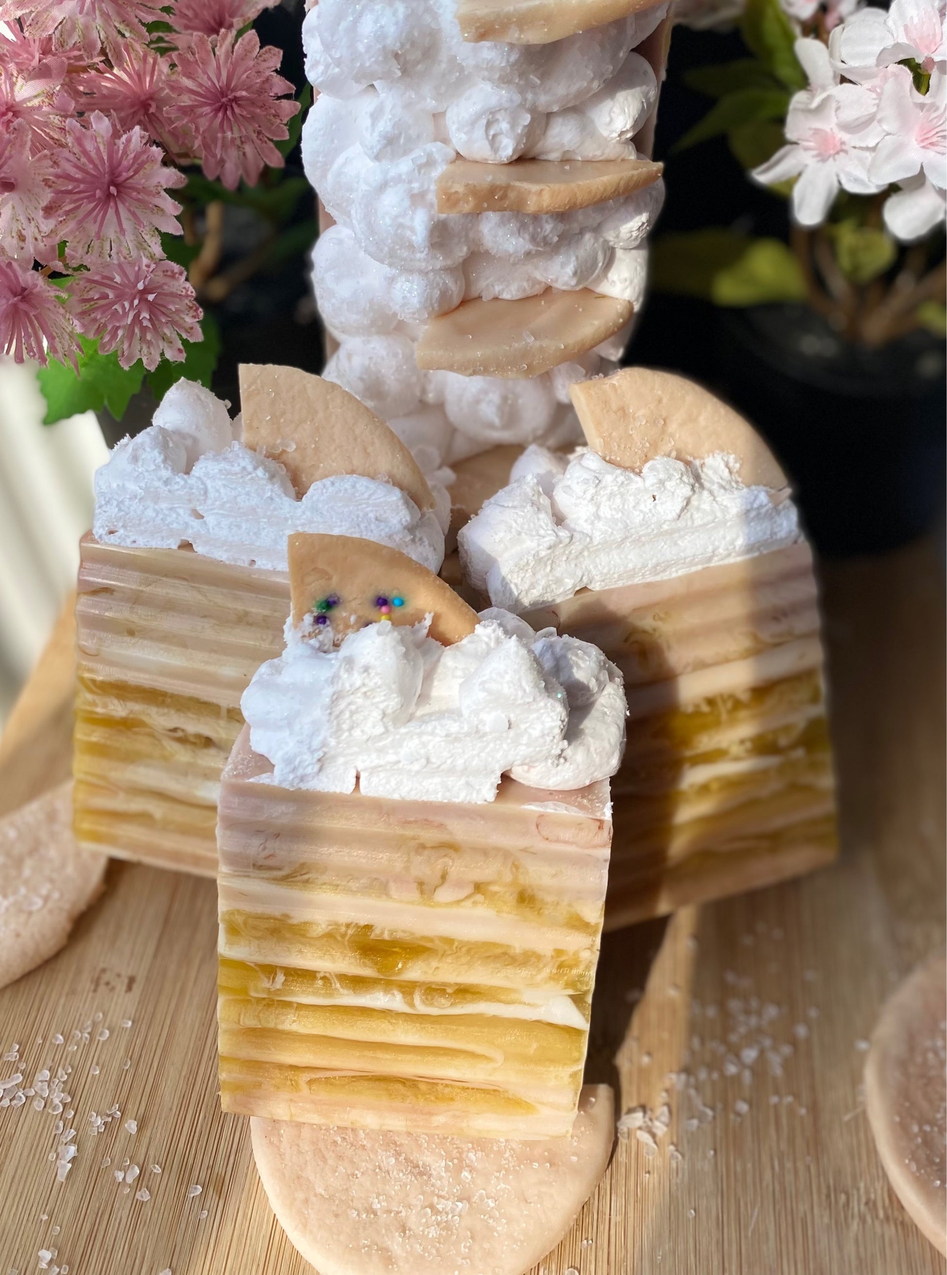 Sugar and Cookies! The Sweetest and delectable treat! This bar was handcrafted using essential and fragrance oil Vanilla, Lemon, Epsom Salt, Whipped foam, Glycerin, and much more. Use this bar to cleanse, provide hydration, moisture. For external use only.