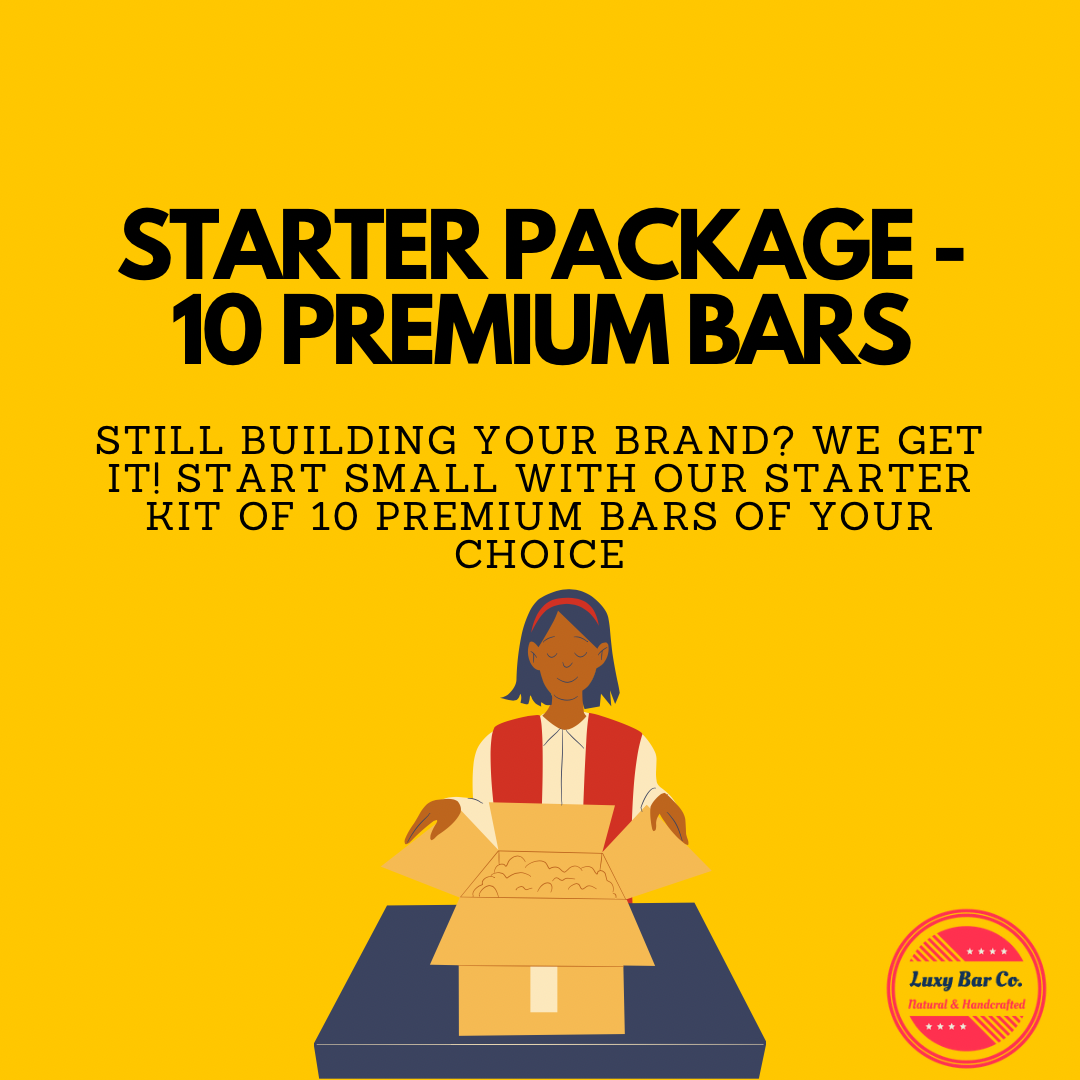 Still building your brand? We get it! Start small with our Starter kit of 10 premium bars of your choice.